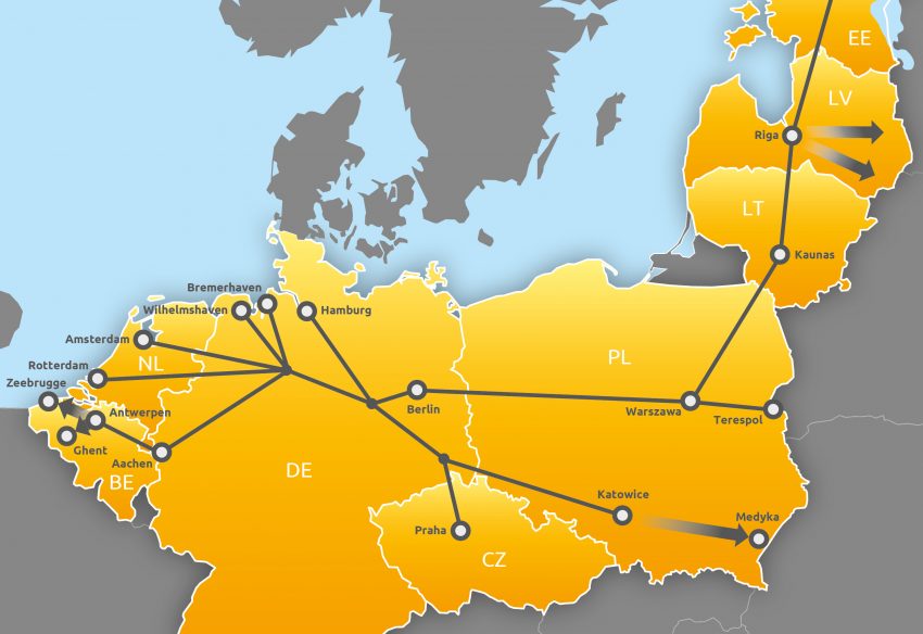 - 12 seaports: Antwerp, Rotterdam, Amsterdam, Wilhelmshaven, Bremerhaven, Hamburg, Riga, Ventspils, Liepāja, Paldiski, Muuga and Sillamäe.