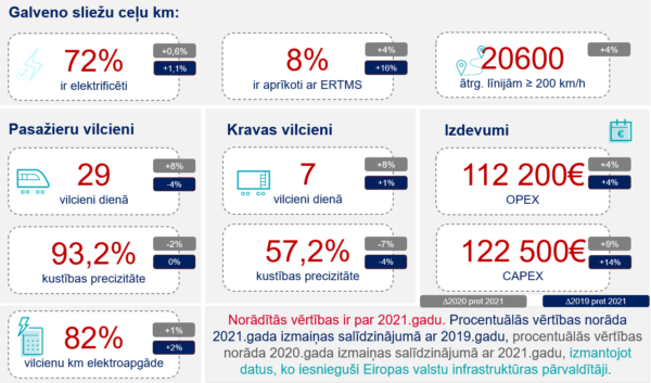 - salīdzinot ar 2020. gadu, gan pasažieru, gan kravas vilcienu precizitāte 2021. gadā ir samazinājusies;
